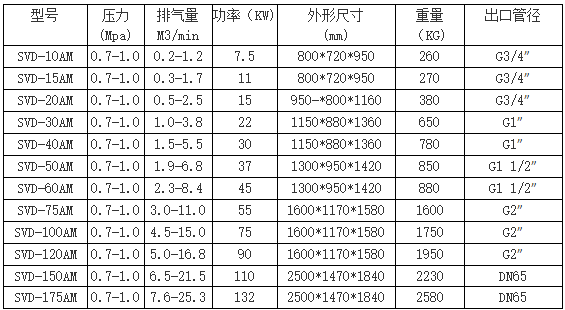 昆能永磁變頻螺桿空壓機(jī)技術(shù)參數(shù)